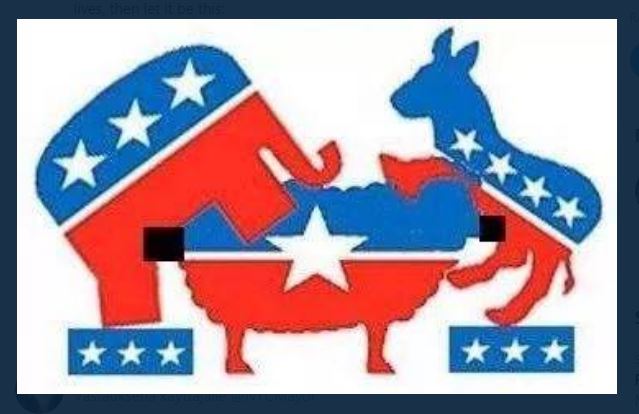Kuva: Somen syövereistä: yhteiskuvassa äänestäjän symboli demokraatti- ja republikaani- puolueiden symbolien kanssa