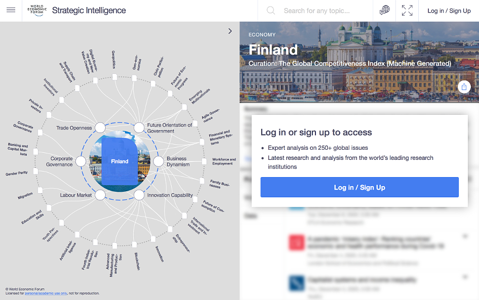 On vaikea keksiä mitä olisi unohdettu, mutta aikaisemmin isona ongelmana pidetty maailman velka näyttäytyy yllättävän pienellä painoarvolla – vaikka covid-19:n varjolla sitä on kasvatettukin biljoonilla. Ainakin yksi Maailman talousfoorumin (WEF) interaktiivisen maailmanhallintahyrrän talousosion lukemattomista säikeistä johtaa Suomeen: