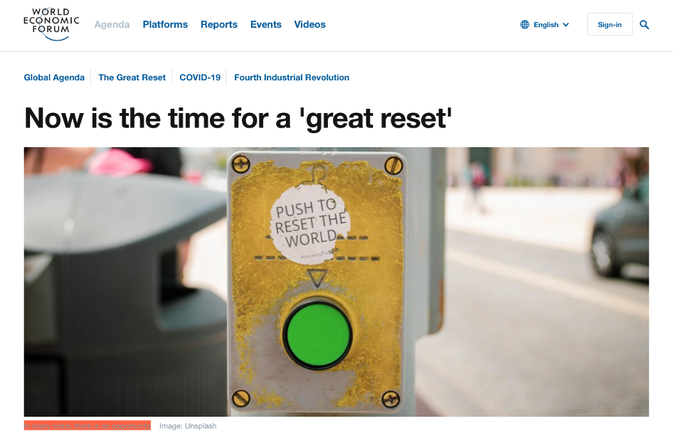 Smith, Brandon | Activist Post (18.6.2020): Globalists Reveal That The “Great Economic Reset” Is Coming In 2021. https://www.activistpost.com/2020/06/globalists-reveal-that-the-great-economic-reset-is-coming-in-2021.html