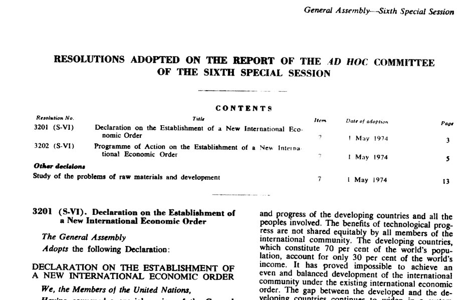 1. toukokuuta 1974 YK teki päätöksen uuden kansainvälisen talousjärjestelmän luomisesta. Päätöksen merkitystä ei silloin tajunnut kukaan.