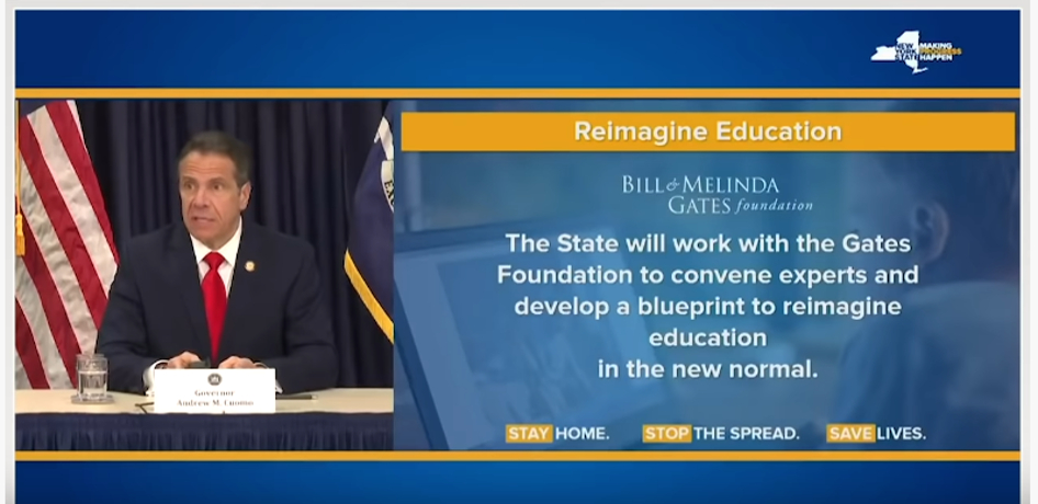 New Yorkin osavaltion kuvernööri Andrew Cuomo ilmoitti 5. toukokuuta yhteistyöstä Bill & Melinda Gates-säätiön kanssa. Tarkoituksena on koota asiantuntijoita uudelleenvisioimaan koulutus uudessa normaalissa. (lähde)