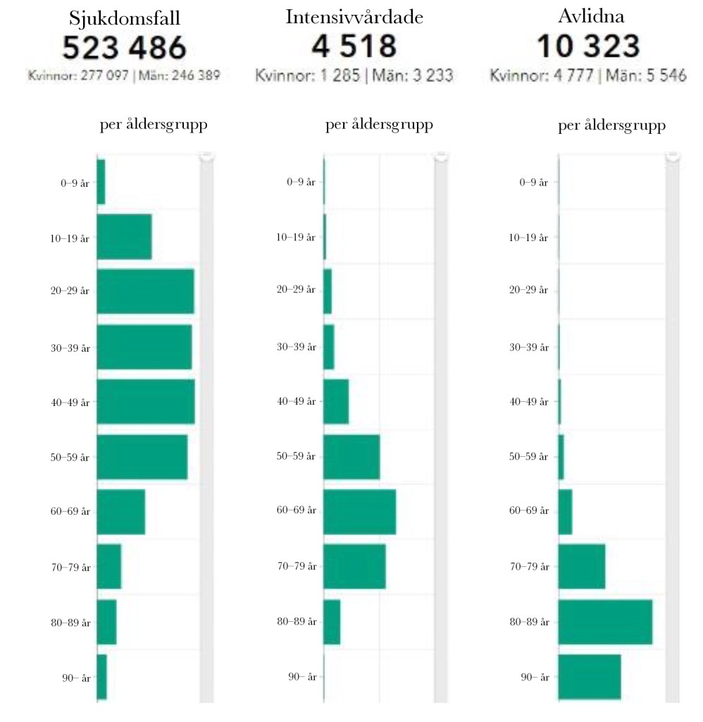 Katsoopa lähes mitä maata tahansa, elämänsä ehtoopuolta taivaltavat ovat selvästi suuremmassa kuolemanvaarassa kuin nuoremmat. Ruotsissa tilanne 17. tammikuuta 2021 näytti seuraavalta: