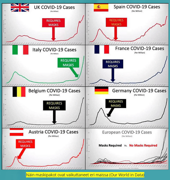 Sivuilta löytyy kuva mm. maskipakon vaikutuksista eri maissa: