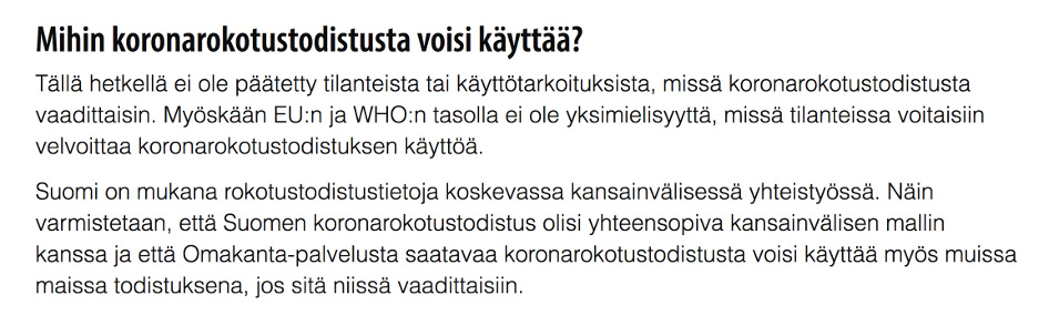 Suomeen rokotuspassit – syy ”ei vielä päätetty”