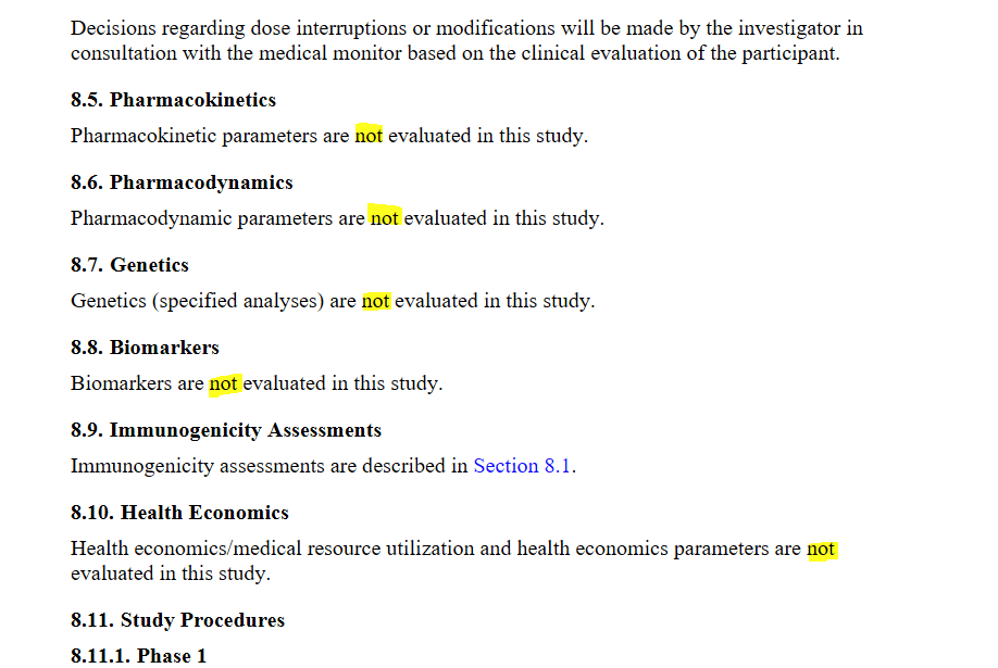 Näitä emme seuraa emmekä arvioi: Ei elimistön vaikutus lääkeaineisiin ja niiden imeytymiseen, lääkeaineiden vaikutus elimistöön, mRNAn vaikutukset perintötekijöiden rakenteeseen, toimintaan, muunteluun ja periytymiseen, biomarkkerit eivätkä terveystaloudelliset parametrit ole kiinnostuksen kohteena Pfizer/BioNTechin korona”rokote”tutkimuksessa (s. 72)