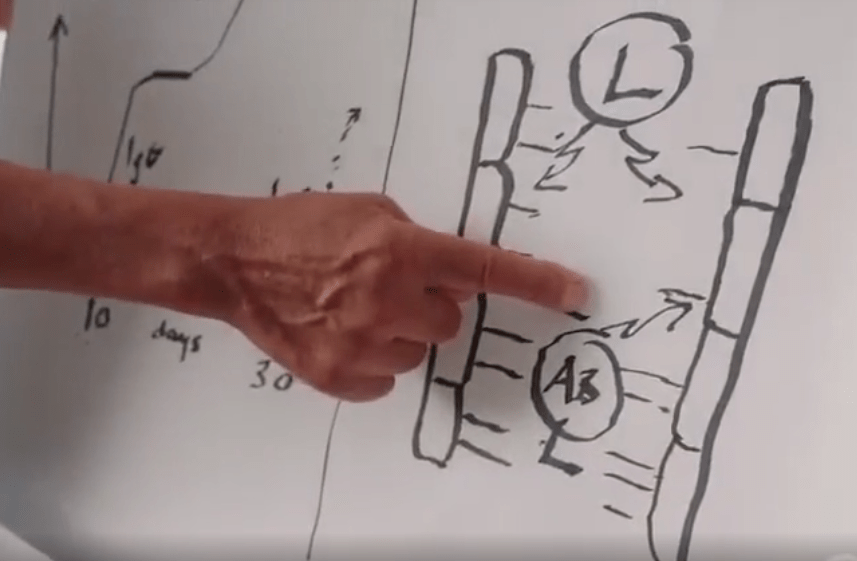 Professori Bhakdi selittää erästä teoriaa koronapiikkien aiheuttamien veritulppien syntymekanismista. Koronapiikkien sisältämä synteettinen piikkiproteiini kulkeutuu muihin elimiin pistoskohdasta. Kun piikkiproteiini saavuttaa verisuonien sisäseinämien solut (sisäkalvo) tunkeutuen soluihin. Solu alkaa tuottaa piikkiproteiinia, jotka työntyvät solusta verenkiertoon.