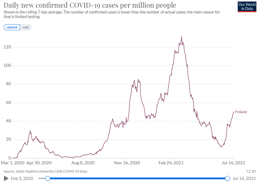 Suomi 20.7.2021: Uusia koronavirustapauksia 461.