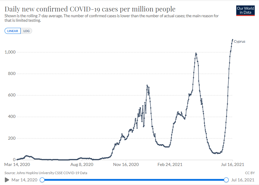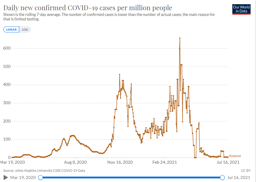 Our World in Data -sivusto ei antanut 17.7.2021 ”uusien tapausten” tietoja Gibraltarista, vastaavat tiedot on haettu Worldometer-sivustolta. Huomatkaa, että toisten maiden ”uusi tapaus” -lukemat ilmoitetaan kymmenlukuina ja toisten satalukuina per miljoona ihmistä.