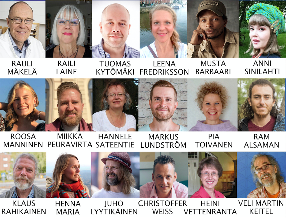Rauli Mäkelä, Raili Laine, Tuomas Kytömäki, Leena Fredriksson, Musta Barbaari, Anni Sinilahti, Roosa Manninen, Miikka Peuravirta, Hannele Sateentie, Markus Lundström, Pia Toivanen, Ram Alsaman, Klaus Rahikainen, Henna Maria, Juho Lyytikäinen, Christoffer Weiss, Heini Vettenranta ja Veli Martin Keitel