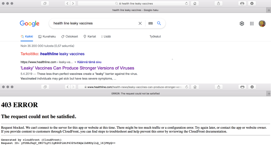 ”Mielenkiintoinen tutkimus” nimim. 137 kirjoitti, ja perässä oli linkki Healthlinen artikkeliin ”’Vuotavat rokotteet saattavat tuottaa vahvempia versioita viruksista” (Leaky’ Vaccines Can Produce Stronger Versions of Viruses –Roberta Alexander | Healthline 27.7.2015). Edellä annettu linkki ei toimi, minulla ainakaan. WaybackMachinen tallenne 30.7.2015 löytyy >>tästä linkistä<< Artikkeleita tutkimuksesta löytyy myös CTV Newsilta (29.7.2015) ja Quanta-lehdeltä vuodelta 2018.