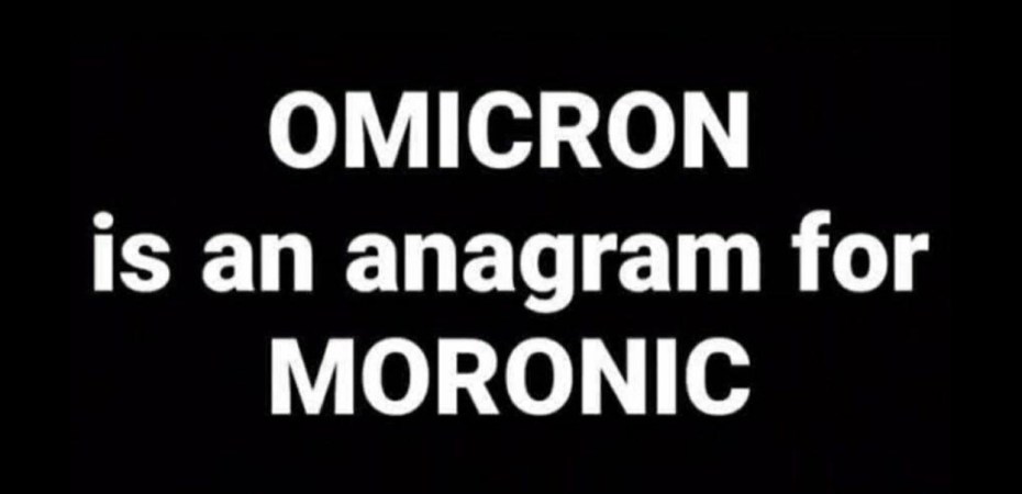 Englanninkielessä kreikkalainen kirjain omikron (o) kirjoitetaan c:llä, omicron. Kirjaimia vispaten saadaan anagrammisana moronic. Suomeksi se olisi ääliömäistä.