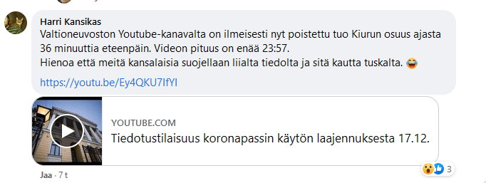 Lakies Onni Rostila Twitterissä: ”3. rokotteen suomat oikeudet ovat ”Uusimman linjauksen mukaan [..] voimassa toistaiseksi.” Jutussa tai komission tiedotteessa ei sanota MITÄÄN järjestelmän kestosta. Eli tervehdi pysyvää valvontayhteiskuntaa. Kukaan ei voi sanoa, etteikö olisi varoitettu.”