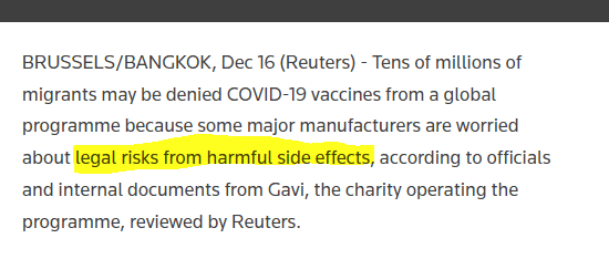 Reuters (16.12.2021): Refugees lack COVID shots because drugmakers fear lawsuits, documents show