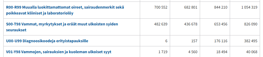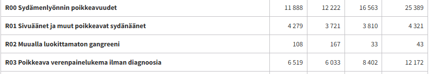 THL: Avohilmo: Perusterveydenhuollon avohoidon ICD-10 – käyntisyyt