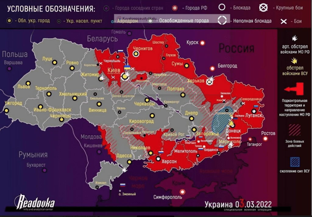 kartta on heidän mukaansa tilanne 3.3.2022 illalla