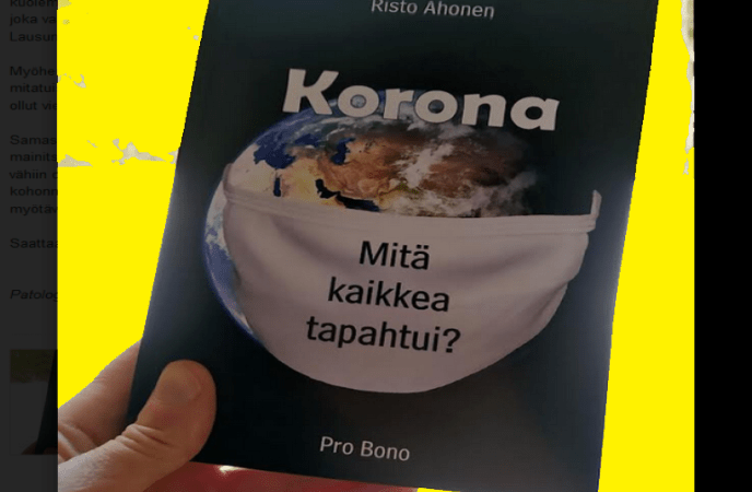 Artikkelikuvassa Risto Ahosen kirja ”Korona — Mitä kaikkea tapahtui?”, kustantaja Pro Bono.